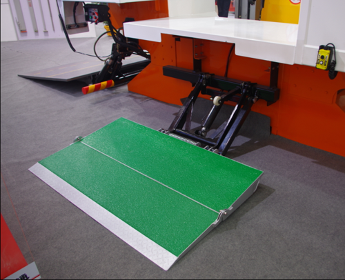 三、新概念尾板。由凱卓立主導(dǎo),新加坡黃芳公司、中集車輛研究院協(xié)同研制的新概念尾板,在此次展會上大放異彩,此款尾板不僅解決了大宗貨物的搬運快捷性,而且也解決了車輛停靠在貨臺邊時的搬運便捷性,為專用車輛物流運輸開辟出一個全新的模式。