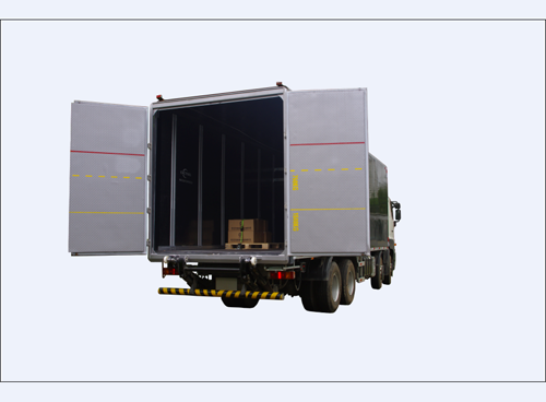 一、車廂尾門式尾板。增強(qiáng)裝運貨物時的便捷性的同時進(jìn)一步減少車輛自重,提高車輛運載效益。